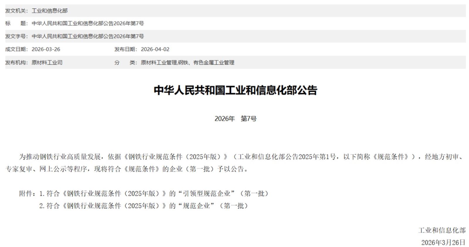 2026年4月2日,国家工信部发布符合《钢铁行业规范条件》的企业(第一批)公告,我省钢铁工业协会的安阳钢铁股份有限公司、河南济源钢铁(集团)有限公司、舞阳钢铁有限责任公司、安钢集团信阳钢铁有限责任公司、沁阳市宏达钢铁有限公司、沙钢集团安阳永兴特钢有限公司、河南安钢周口钢铁有限责任公司、河南凤宝特钢有限公司、闽源钢铁集团有限公司、舞钢中加钢铁有限公司、南阳汉冶特钢有限公司11家会员企业,凭借在产品质量、环保超低排放、安全生产、工艺装备及能源消耗等领域的过硬表现,成功斩获国家级“规范企业”这一权威认证,充分彰显了河南钢铁行业的整体实力与规范发展水平。