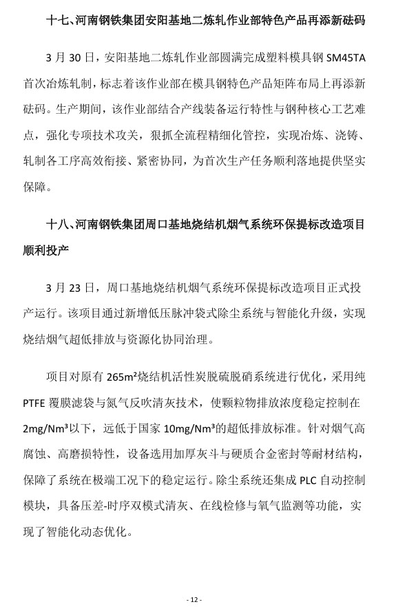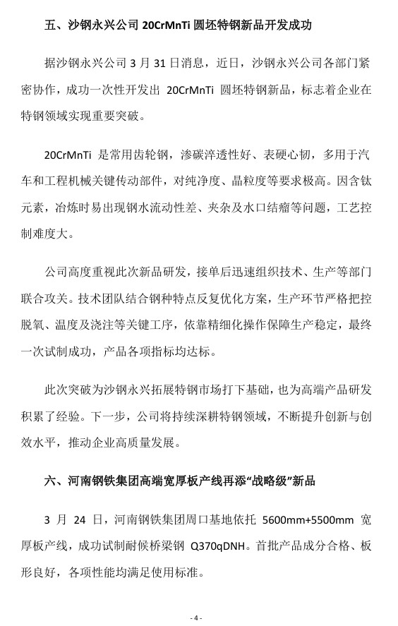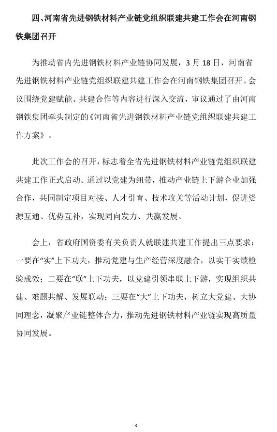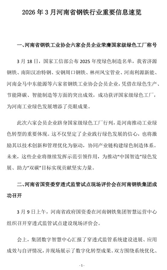 2026年3月河南省钢铁行业重要信息速览