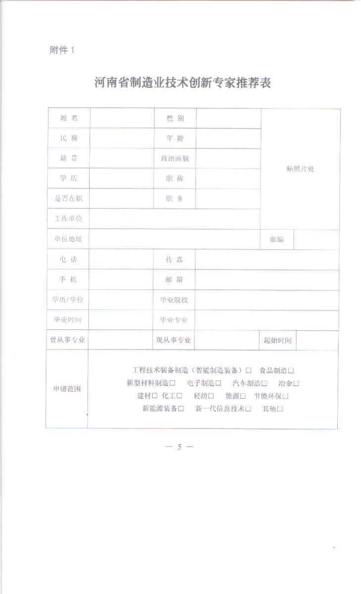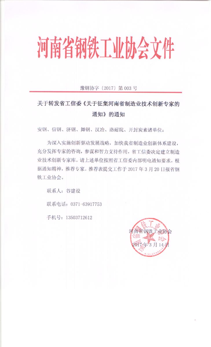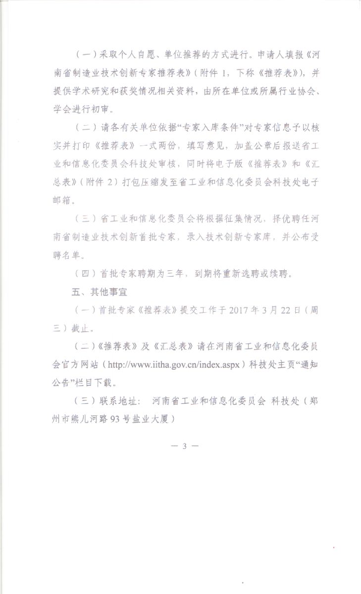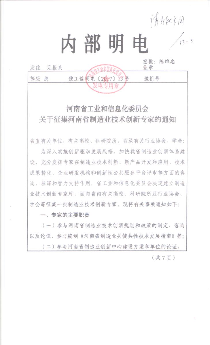 关于转发省工信委《关于征集河南省制造业技术创新专家的通知》的通知