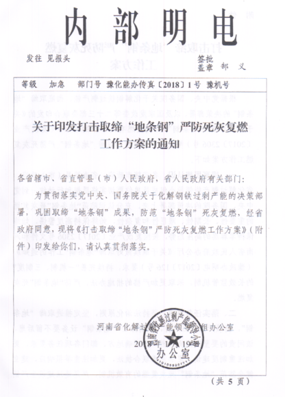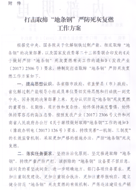 关于印发打击取缔“地条钢” 严防死灰复燃工作方案的通知