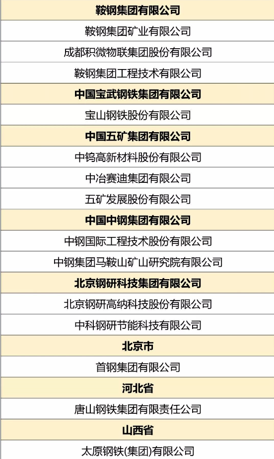 据悉,共有404家企业入选“双百企业”名单,包括224家中央企业及其子公司,以及180家地方国资企业。据《中国冶金报》、中国钢铁新闻网小编统计,名单中包含冶金企业共计19家。具体名单如下——