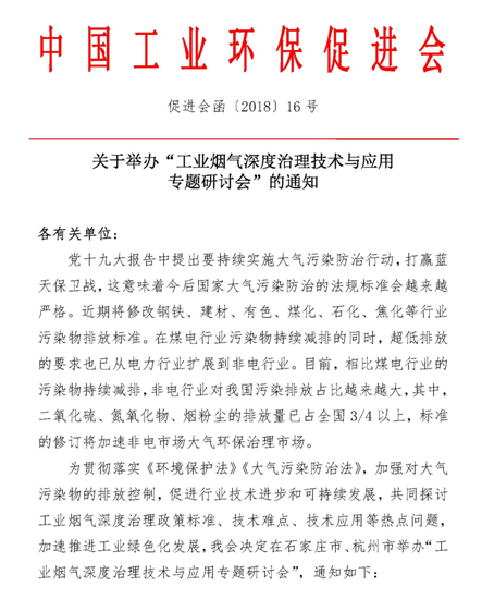 关于举办“工业烟气深度治理技术与应用专题研讨会”的通知