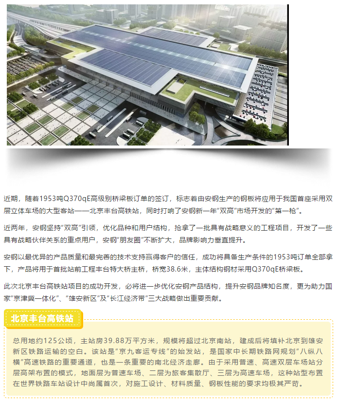 安钢产品成功应用于我国首座采用双层立体车场的高铁站