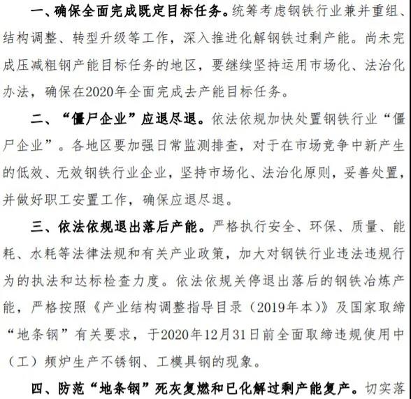 该通知明确了钢铁行业化解过剩产能工作的19个要点: