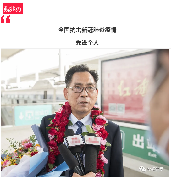 魏兆勇同志在此次全国抗击新冠肺炎疫情表彰大会上,被表彰为全国抗击新冠肺炎疫情先进个人,也是河南国资系统支援武汉的68人中唯一获此殊荣的个人。