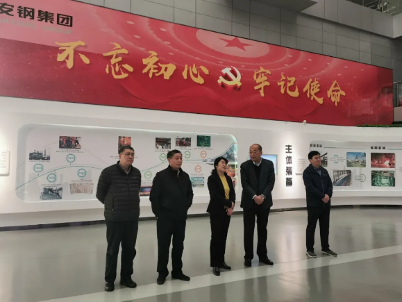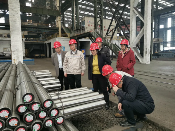 在济源钢铁调研时,李玉田董事长介绍了济源钢铁生产经营现状及公司改制20年的发展历程。随后,屈秀丽一行来到第一炼钢厂、特殊钢大棒材生产线和济源钢厂精品材有限公司实地了解生产经营情况。
