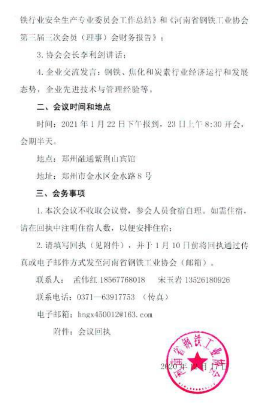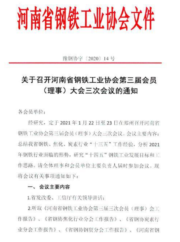 关于召开河南省钢铁工业协会第三届会员(理事)大会三次会议的通知