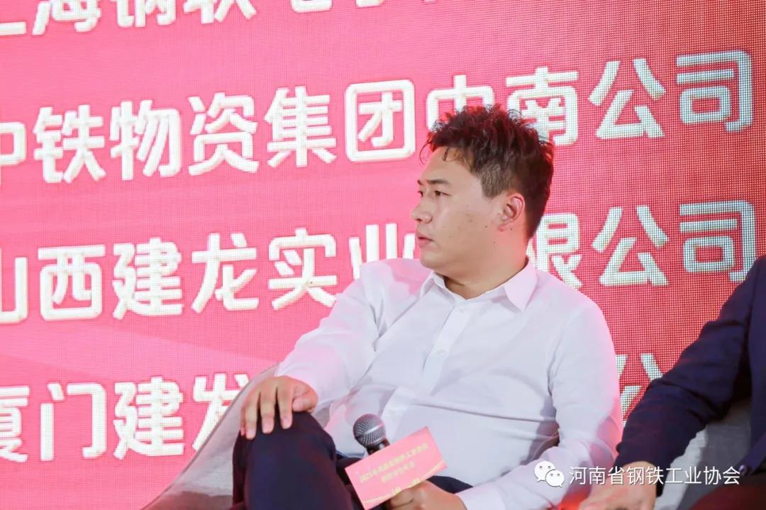 接着由上海钢联电子商务股份有限公司钢材事业部副总经理陈靖夫主持“大咖聊黑金”-暨华中区域黑色产业链论坛环节,特邀嘉宾有中铁物资集团中南公司副总经理于宁,河南省房地产商会秘书长王树峰,山西建龙实业有限公司销售处处长崔连富,河南安信钢铁销售有限公司郑州公司总经理杨家远,厦门建发金属有限公司华中总经理黄啸。