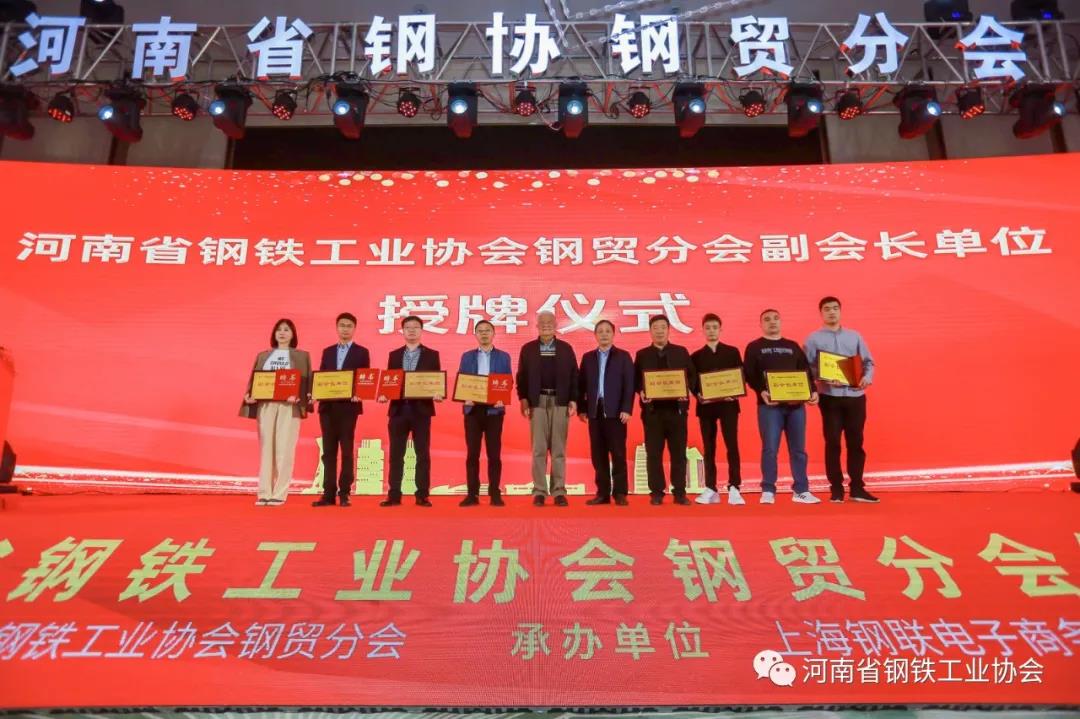 随后进入会议的授牌环节,钢贸分会成立以来,工作不断取得进展,影响日益扩大,我们的队伍也在逐步壮大,本次共有34家新会员单位加入我们的大家庭,真正实现了一条闭合钢铁产业链。河南省钢铁工业协会钢贸分会授牌仪式,副会长单位9家,理事单位8家,会员单位17家。其中,河南省钢铁工业协会钢贸分会副会长单位成员名单分别是:河南钢娃电子商务有限公司、郑州亿仁科贸有限公司、河南鑫山贸易集团有限公司、郑州宏之舟钢铁有限公司、上海钢联电子商务股份有限公司、河南中原现代物流有限公司、中物流河南有限公司、河南唐尧供应链管理有限公司、河南大万供应链管理有限公司。