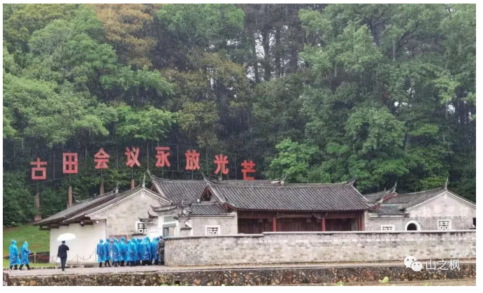 **古田会议会址在溪背村原廖氏宗祠,红军时期为曙光小学堂。古田会议确立了思想建党、政治建军和党指挥枪的原则。)