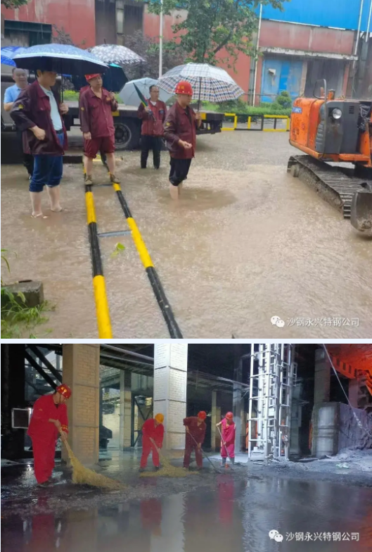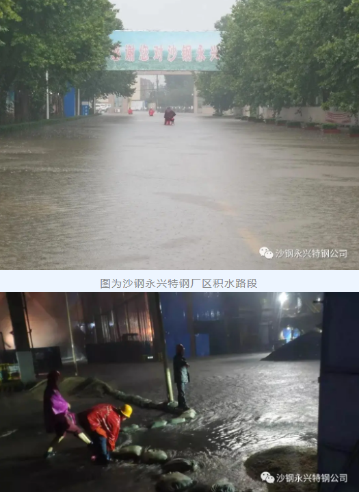 7月22日,安阳市平均降水量超过300毫米,沙钢永兴特钢的地势低洼地段出现了严重积水,给企业顺利生产、工作正常运转、员工安全出行等方面带来了严峻考验和挑战。