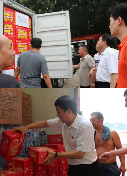 7月23日下午,河南省人大代表、中钢网董事长姚红超,董事会秘书、风控总监张威,运营中心副总裁柴伦,品牌内容部总监何顺才等一行人,带着896件方便面、1260件纯净水、500箱面包以及50件八宝粥等,满满4卡车的爱心物资驶进白沙镇,支援郑州防汛救灾工作,帮助受灾群众度过难关。