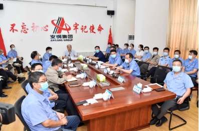 在简要介绍安钢上半年生产经营情况后,围绕安钢未来发展,李利剑介绍说,上半年安钢克服环保、疫情、洪灾等不利因素的影响,企业全流程高效化生产攻关深入推进,效果显著,多项主要经济技术指标屡创新高,实现了良好开局。进入新发展阶段,中华民族的伟大复兴已踏上新的征程,国家“十四五”和远景目标已绘就蓝图。安钢必须抓住机遇、乘势而上、起而行之,奋力开创改革发展的新局面,把安钢的战略规划放到国家和行业的大局中去审视、去谋划、去推动,放在河南省的整体规划中去统筹,要继续坚持“创新驱动、品质领先、提质增效、转型发展”总体发展战略,以创新为引领,坚定不移地推进“三个走出”、打造“三大特色”,全力构建以郑州为管控中心,以安阳、周口、信阳、柬埔寨为钢铁生产基地,以相关多元产业为支撑的“一中心、四基地、多产业”发展大格局,着力发展智能制造、信息产业、电磁新材料、绿色环保产业等战略新兴产业,推动安钢早日建设成为现代化钢铁强企。