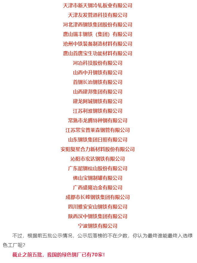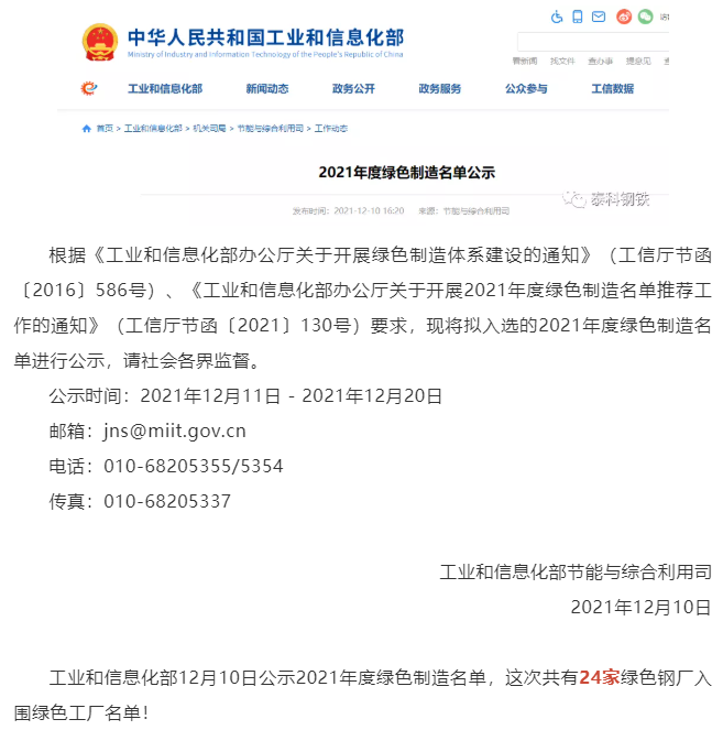 工信部再公示24家绿色钢厂!94家钢厂入围绿色工厂