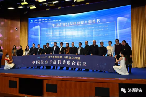 李玉田董事长作为中国科技馆发展基金会的理事和“中国企业公益科普联合倡议”的首批倡议单位代表,与中国航天科技集团、中国电子科技集团、中国航空发动机集团、中国石油化工集团有限公司、中国机械工业集团有限公司、哈尔滨电气集团有限公司、有研科技集团有限公司、中国农业发展集团、小米集团、荣民控股集团、新奥集团、联想集团、内蒙古伊利实业集团、复星集团、均瑶集团、科大讯飞股份有限公司、国维财富投资集团有限公司、北京天辰时代文化艺术发展有限公司、阿里巴巴集团、北京三快在线科技有限公司(美团)和中国科学技术出版社有限公司共22家企业代表,共同发布了《科学素质赋能 科技自立自强“中国企业公益科普联合倡议”》。