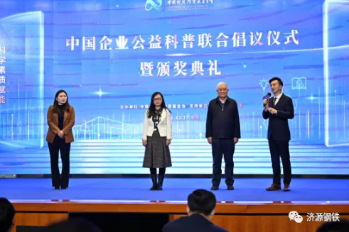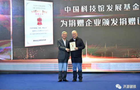 为积极响应此次公益科普的联合倡议,济源钢铁成为本场倡议后的第一家捐赠企业,拟向中国科技馆发展基金会捐赠400万元用于洛阳第一高级中学建设数理探索馆。中国科技馆发展基金会理事长熊群力为李玉田颁发了捐赠证书。