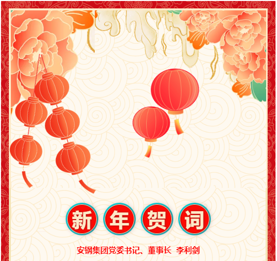 时光飞逝,白驹过隙。在辞旧迎新的欢庆时刻,我谨代表集团公司领导班子,向全体干部职工、离退休职工及职工家属,向长期以来关心支持安钢发展的各级领导、合作伙伴和社会各界朋友,致以诚挚的问候和美好的祝福!