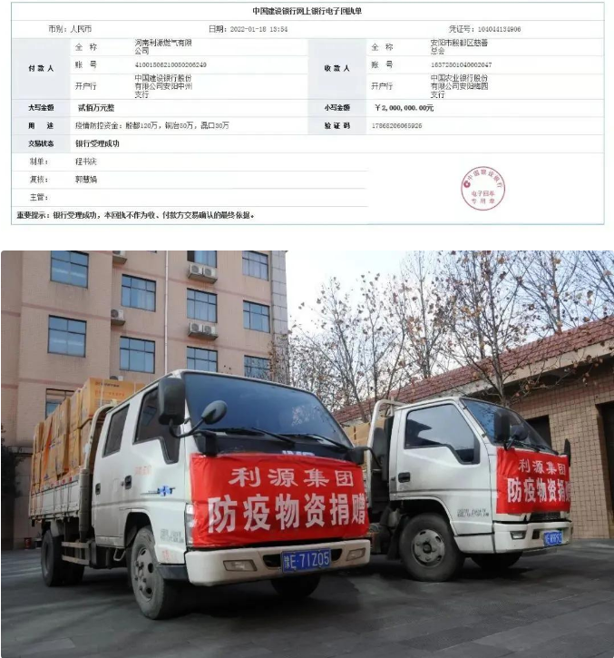 河南利源集团为抗击疫情捐款200万元,捐助防疫物资10万元