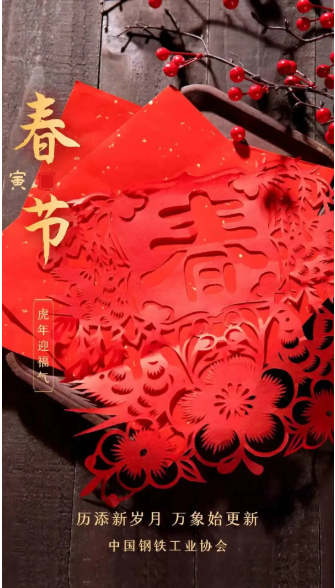 金牛兴华夏,玉虎啸阳春。在虎年新春佳节到来之际,我谨代表中国钢铁工业协会向长期奋战在钢铁战线上的广大干部职工致以新春的问候!向一直关心和支持钢铁行业发展的各界领导和朋友们表示衷心的感谢!