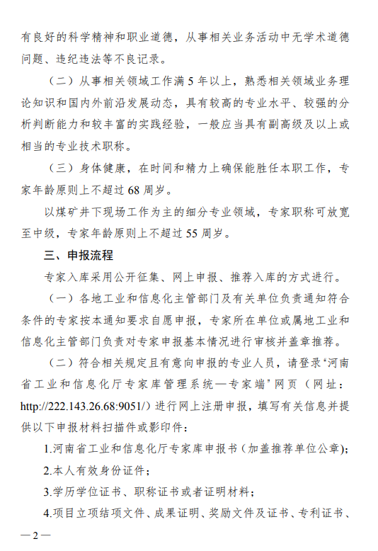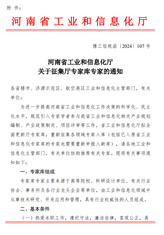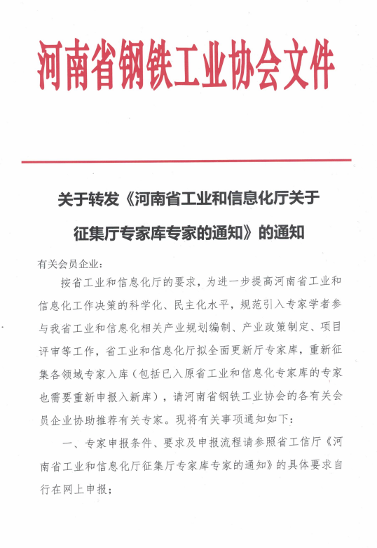 关于转发《河南省工业和信息化厅关于征集厅专家库专家的通知》的通知
