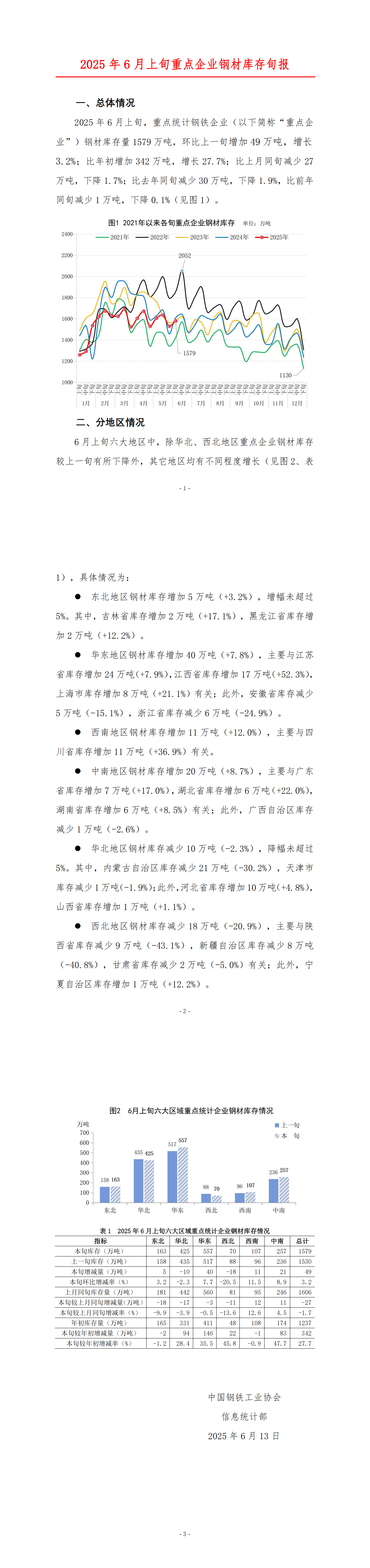 2025年6月上旬重点企业钢材库存旬报