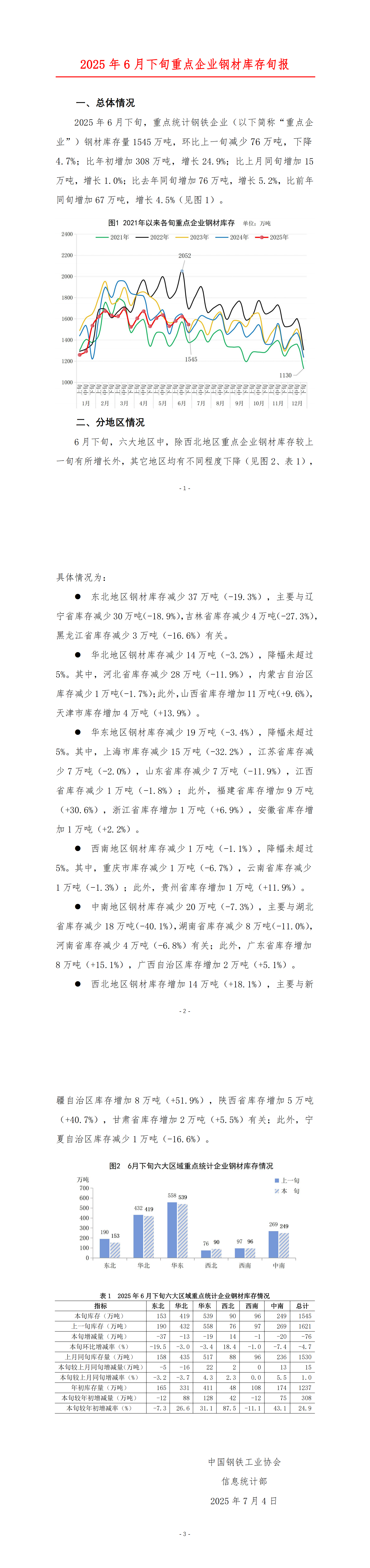 2025年6月下旬重点企业钢材库存旬报