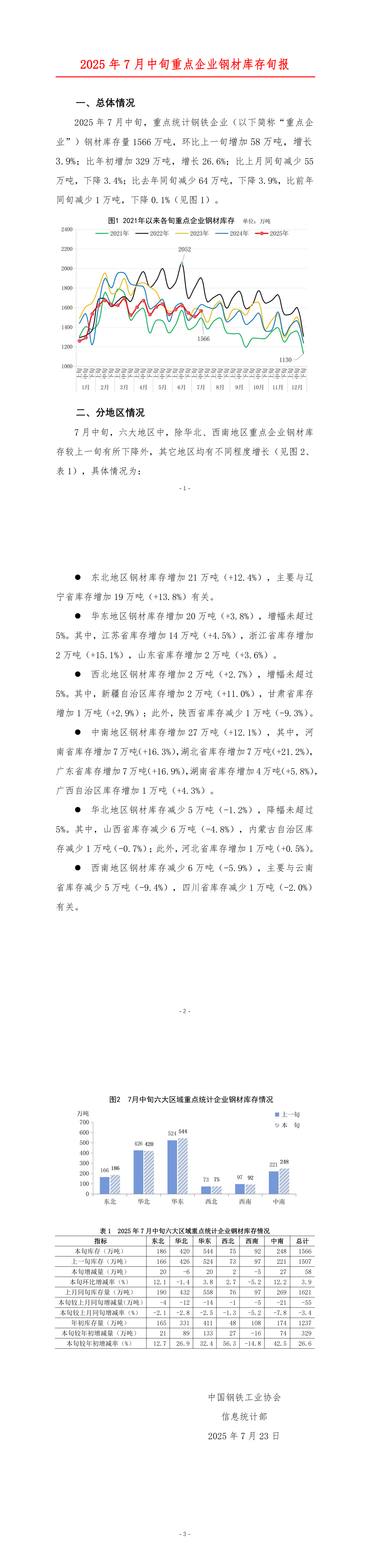 2025年7月中旬重点企业钢材库存旬报