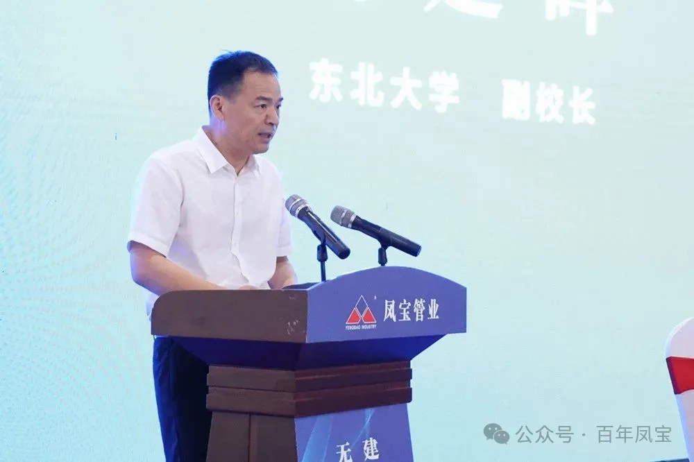 凤宝特钢总经理、凤宝管业董事长李静敏向长期以来关心、支持凤宝发展的各级领导、政府部门表示衷心的感谢。他介绍了科技创新合作共建博士后科研工作站情况。表示,凤宝将以此为新起点,倾力将博士后科研工作站打造成为:服务产业升级的“核心引擎”,工作站将紧密对接国家产业发展规划,聚焦高端装备制造、新材料等战略性新兴产业方向,围绕管材领域关键核心技术,依托两校顶尖科研力量联合攻关,突破“卡脖子”技术,产出一批具有重大价值、引领产业升级的原创性成果,为企业高质量发展提供坚实支撑;引育高端人才的“凤宝磁场”,我们将联合两校,制定具有国际竞争力的博士后引育计划,吸引海内外优秀博士智汇红旗渠;深化校地企融合的“示范标杆”,我们期待与北科大、东大在联合承担国家和省级重大科研项目、共建高水平实验室、联合培养高层次人才等方面开展更深更广合作,努力打造校地企融合创新共赢典范;赋能凤宝发展的“智慧源泉”。将以最高的政治站位、最大的合作诚意、最优的资源保障,举全公司之力,确保共建博士后工作站行稳致远、硕果盈枝。
