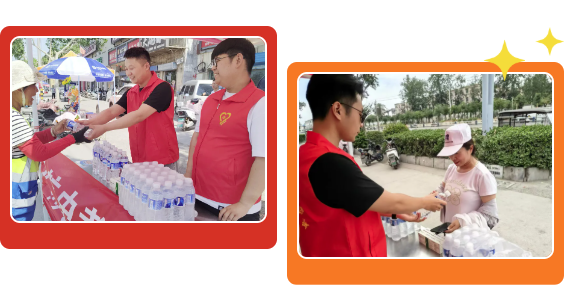 “你们辛苦了,请喝水!”志愿者们还主动为在考点现场服务的公安民警和环卫工人送去了清凉解渴的矿泉水。