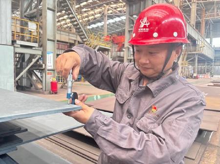 精益求精,锻造特钢生产"全能手"。他带领丁班以打造高端高效品种钢为目标,推行“零缺陷”管理,累计解决技术难题12项,提出改进建议30余条,成功解决多项技术难题。首创"双岗联检"机制,在正火厚规格生产中,每两小时与副班长开展联合巡检,将钢板尺寸公差控制在±0.5mm以内。