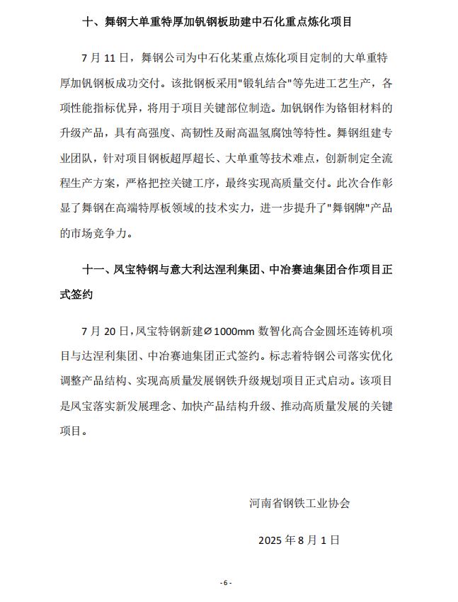来源:河南省钢铁工业协会 编辑:管理员 2025年08月02日 10:23