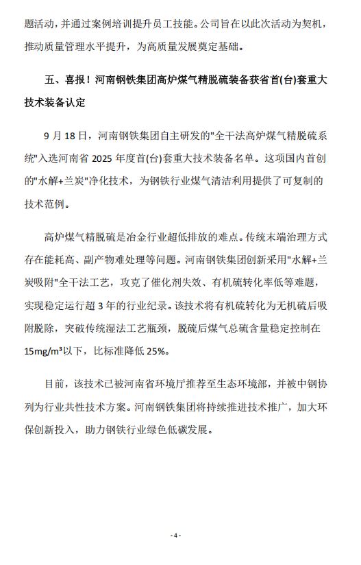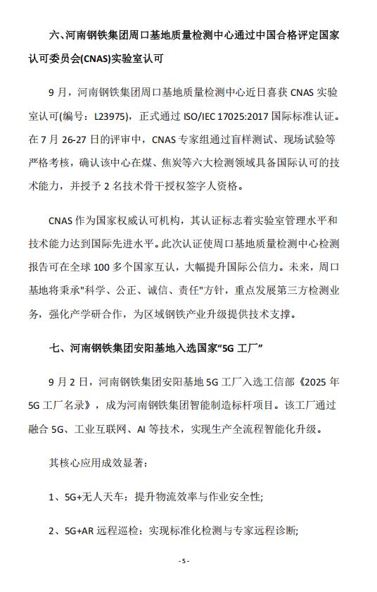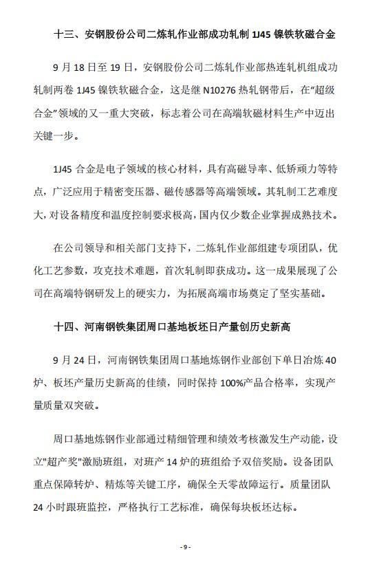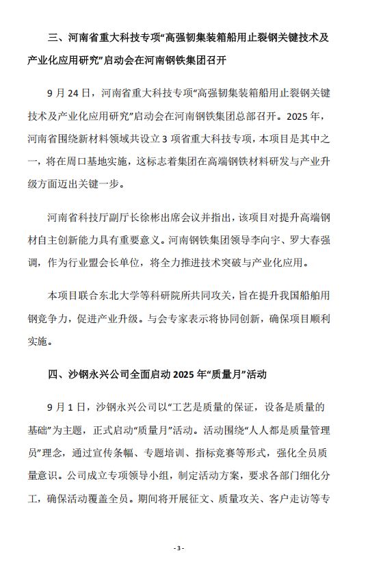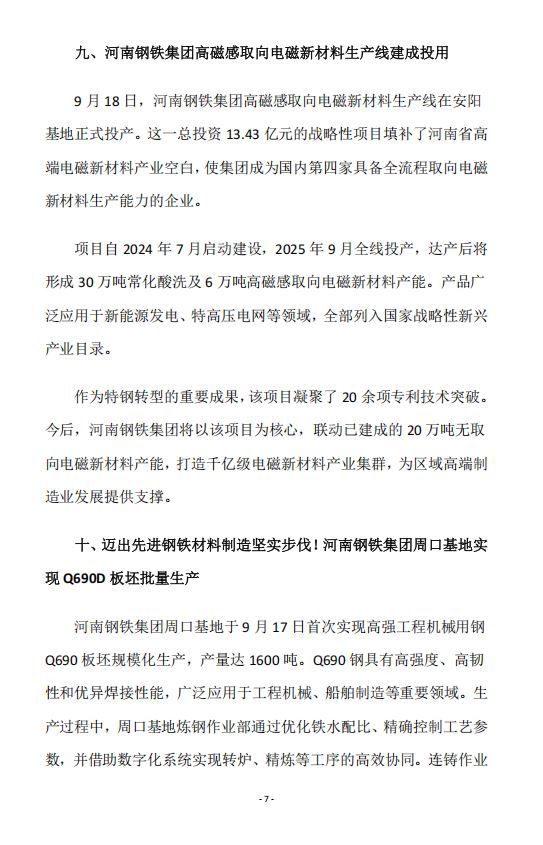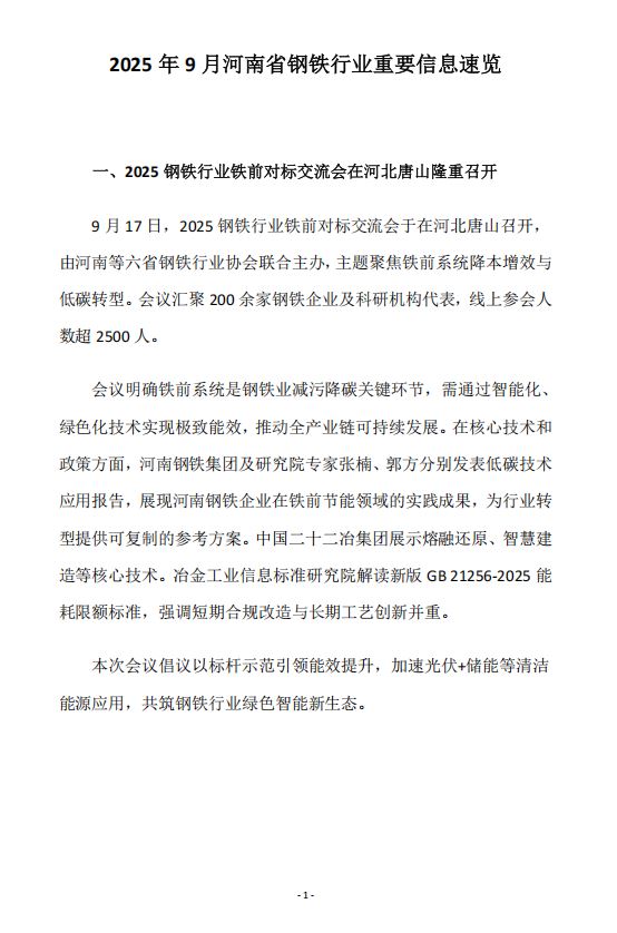 2025年9月河南省钢铁行业重要信息速览