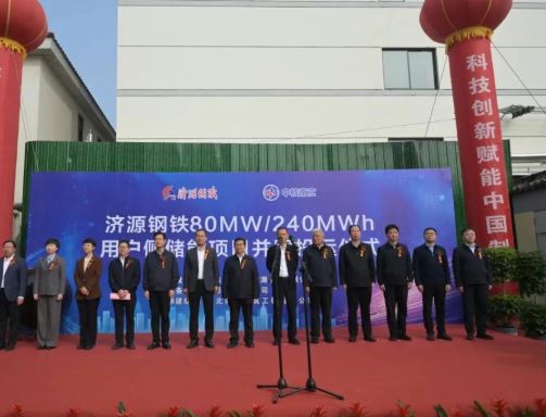 济源示范区党工委书记、市委书记徐衣显,济源示范区管委会主任、市长秦保建,示范区管委会党组成员、副市长王笑非,济源钢铁集团党委书记、董事长李玉田,远景高级副总裁、远景储能总裁田庆军,中核(南京)能源发展有限公司常务副总肖晓东,河北靖峡建筑工程有限公司总经理周正以及全市重点企业、相关政府职能部门的领导和项目的设计、施工及济钢的员工代表出席项目投运仪式,共同见证储能项目的并网投运。