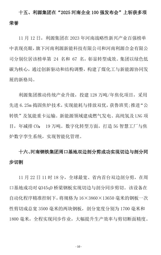 2025年11月河南省钢铁行业重要信息速览