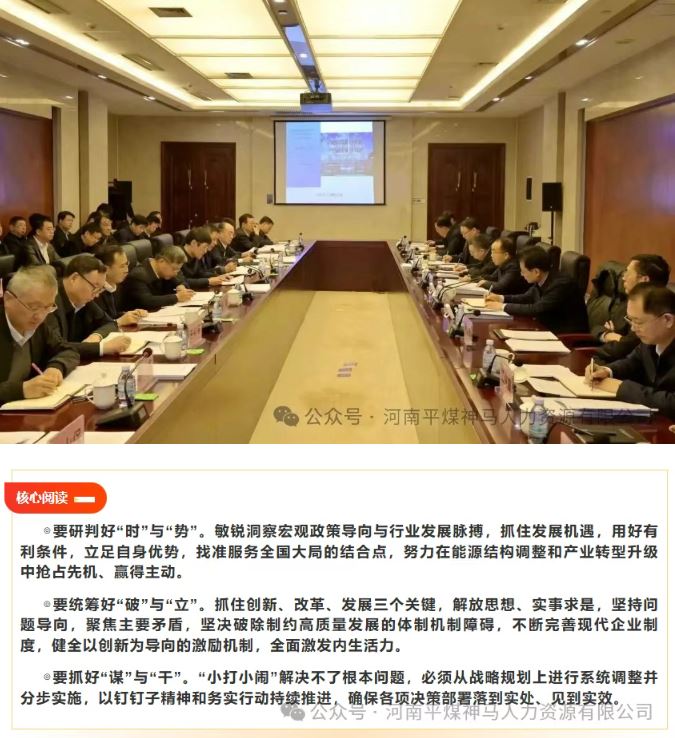李毛要求,要立足实际情况,坚持一企一策、分类施策,根据不同板块特点和发展基础,因地制宜制定发展策略。要强化资本运作,推动企业瘦身健体、轻装上阵,将更多精力聚焦于培育新动能、开拓新赛道上。要加强河南能源集团、平煤神马集团业务相近、领域相关企业的沟通对接、资源共享与经验互鉴,更好汇聚发展合力。