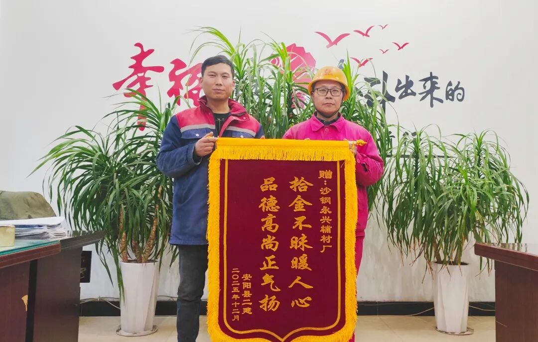 近日,一面写有“拾金不昧暖人心,品德高尚正气扬”金灿灿大字的锦旗送到了辅材厂矿渣制粉车间电工杨红亮的手中,感谢他拾金不昧,捡到手机主动物归原主。